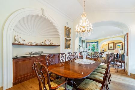 Todos los espacios de la casa tienen buena altura, los detalles en madera de los muebles empotrados son increíbles, sobre todo en los libreros de la estancia principal que tiene doble altura con un traga luz central y chimenea.