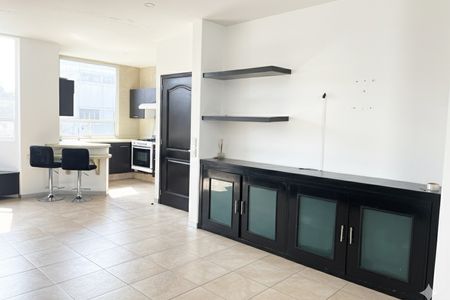 Estancia y espacio amplio e iluminado para sala y comedor con piso de madera. En pasillo se encuentra un baño y closet de blancos. Así mismo tiene un estudio/ family room con vista a la ciudad.